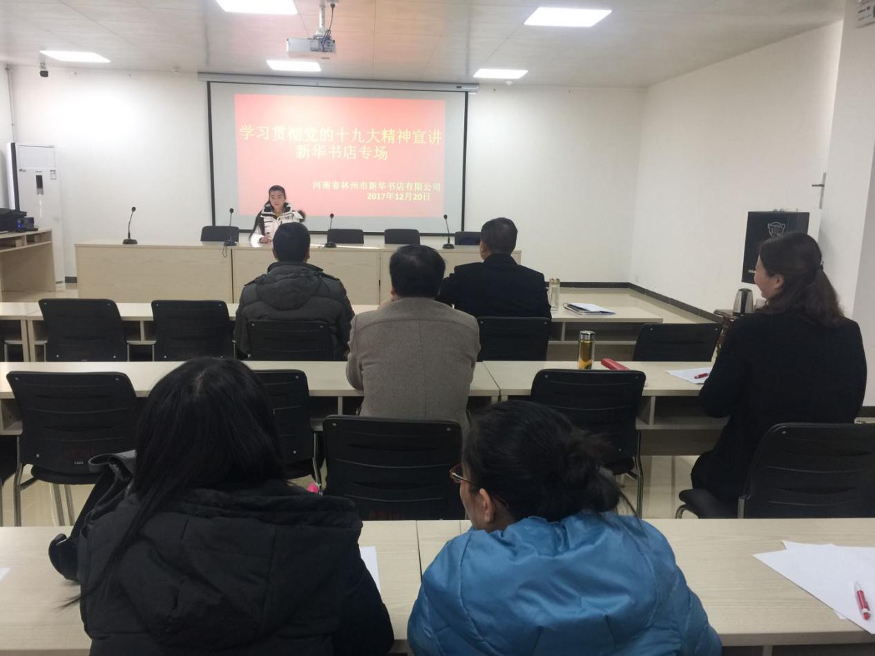 12月20日,林州市新華書店召開學(xué)習(xí)貫徹黨的十九大精神宣講報告會,邀請市委宣講團(tuán)成員、市委黨校教師張路為公司全體干部職工作宣講。公司黨支部書記、經(jīng)理劉進(jìn)明主持會議。