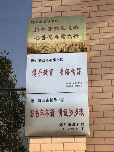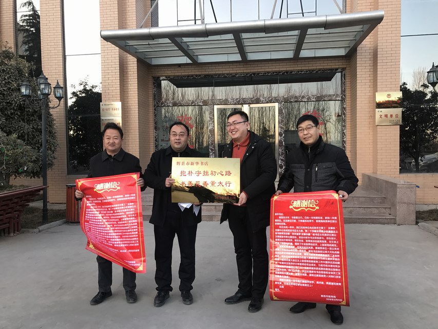 近日,輝縣市教育局副局長王琪一行代表教育局黨委來到輝縣市店,他們給該店送來了一個“抱樸守拙初心路,書香花香熏太行”的牌匾,并送來感謝信一封,充分肯定了輝縣市店2017年的工作,并對該店多年來對教育工作的支持表示感謝。這是輝縣市教育局連續(xù)三年給該店送來牌匾和感謝信。
