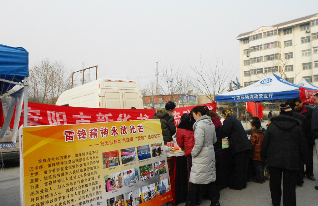 為了弘揚(yáng)雷鋒精神,方便廣大讀者購(gòu)書(shū),在紀(jì)念雷鋒同志犧牲五十周年之際,安陽(yáng)圖書(shū)音像城積極與安陽(yáng)化肥廠團(tuán)委聯(lián)系,精心挑選紀(jì)念雷鋒同志的相關(guān)圖書(shū)、暢銷(xiāo)書(shū)組成流動(dòng)書(shū)店,到化肥廠住宅小區(qū)為廣大職工和家屬提供流動(dòng)售書(shū)服務(wù),取得了良好的社會(huì)效益和經(jīng)濟(jì)效益。活動(dòng)不僅滿(mǎn)足了企業(yè)干部職工的精神文化需求,而且較好地解決了企業(yè)干部職工買(mǎi)書(shū)難的問(wèn)題,進(jìn)一步樹(shù)立了新華書(shū)店的良好社會(huì)形象。