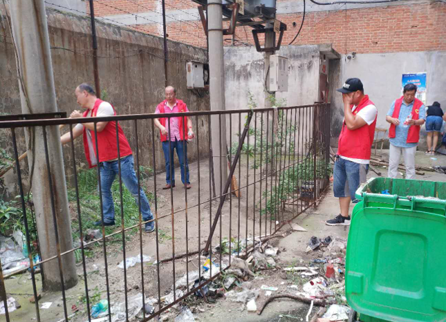 全體黨員志愿者身著紅馬甲,組織有序,分工明確,有的手拿撿拾器和塑料袋,對小區(qū)綠化帶、地面雜物和衛(wèi)生死角進(jìn)行了清潔打掃,有的手拿小鐵鏟對粘貼在墻上的小廣告進(jìn)行了清除,有的推著小車將樓道內(nèi)的雜物運(yùn)走。時值盛夏,烈日當(dāng)頭,氣溫達(dá)到36度以上,志愿者們被熱浪包圍,汗水濕透了衣衫,卻沒有一個人放松懈怠,大家不怕臟,不怕累,干勁十足,毫無怨言。一個多小時后,在志愿者們的齊心協(xié)力下,將小區(qū)打掃的煥然一新,徹底解決了小區(qū)存在的臟、亂、差問題,居民們紛紛點(diǎn)贊。