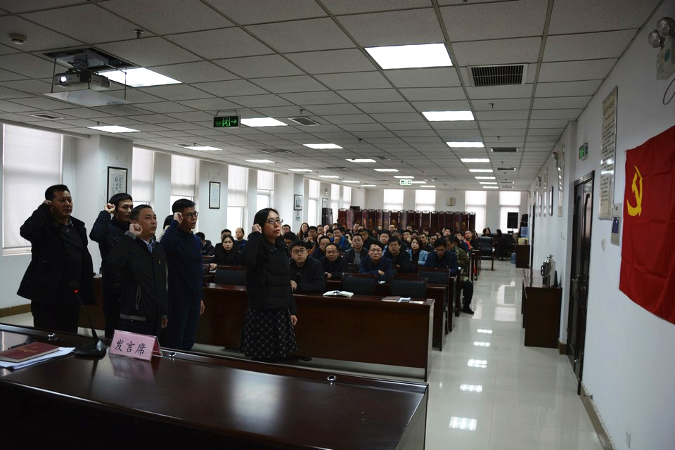 會(huì)議首先舉行新黨員入黨宣誓活動(dòng)。發(fā)行集團(tuán)教育總監(jiān)霍繼紅作為領(lǐng)誓人,帶領(lǐng)吳軍等5名新黨員在黨旗下莊嚴(yán)宣誓。新黨員代表劉保權(quán)作了表態(tài)發(fā)言。