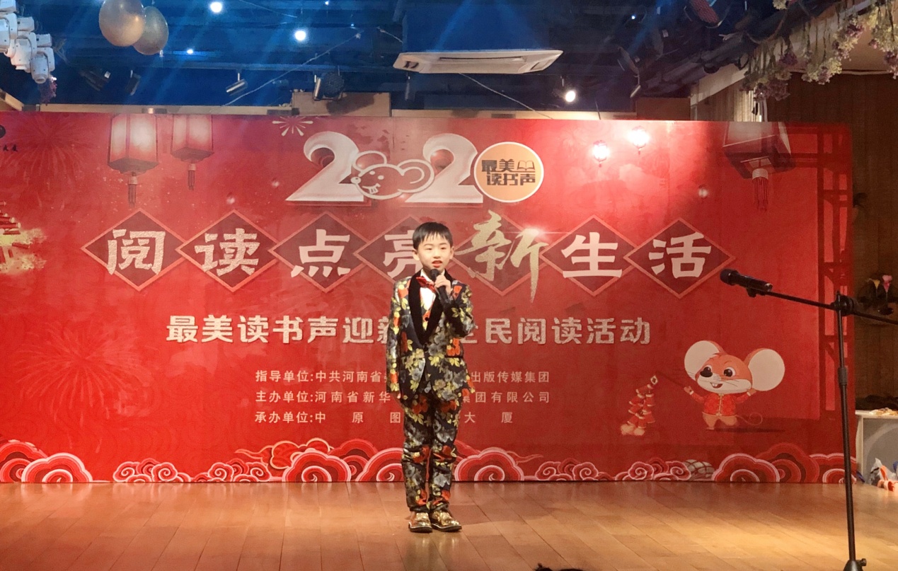 “七十年春華秋實,七十年日升月落。這里,有我們熱血澎湃的青春年華…”,2019年12月29日晚,在中原圖書大廈組織開展的“最美讀書聲”慶元旦閱讀活動上,8歲的曹子睿小朋友正在用鏗鏘有力的聲音深情朗誦《70年贊歌》。