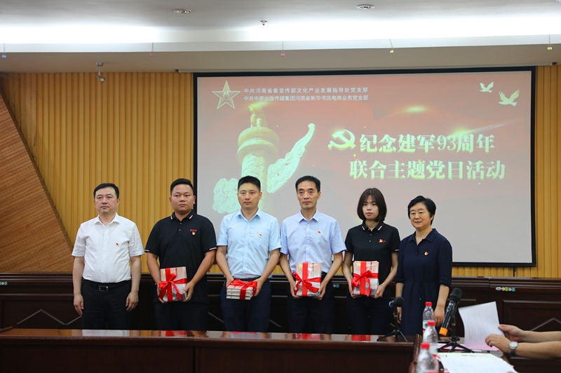 活動中,省委宣傳部文產(chǎn)處黨支部和發(fā)行集團電商業(yè)務黨支部聯(lián)合舉行了“黨組織共建單位”揭牌儀式,并為兩個支部的退伍老兵送上了節(jié)日慰問。