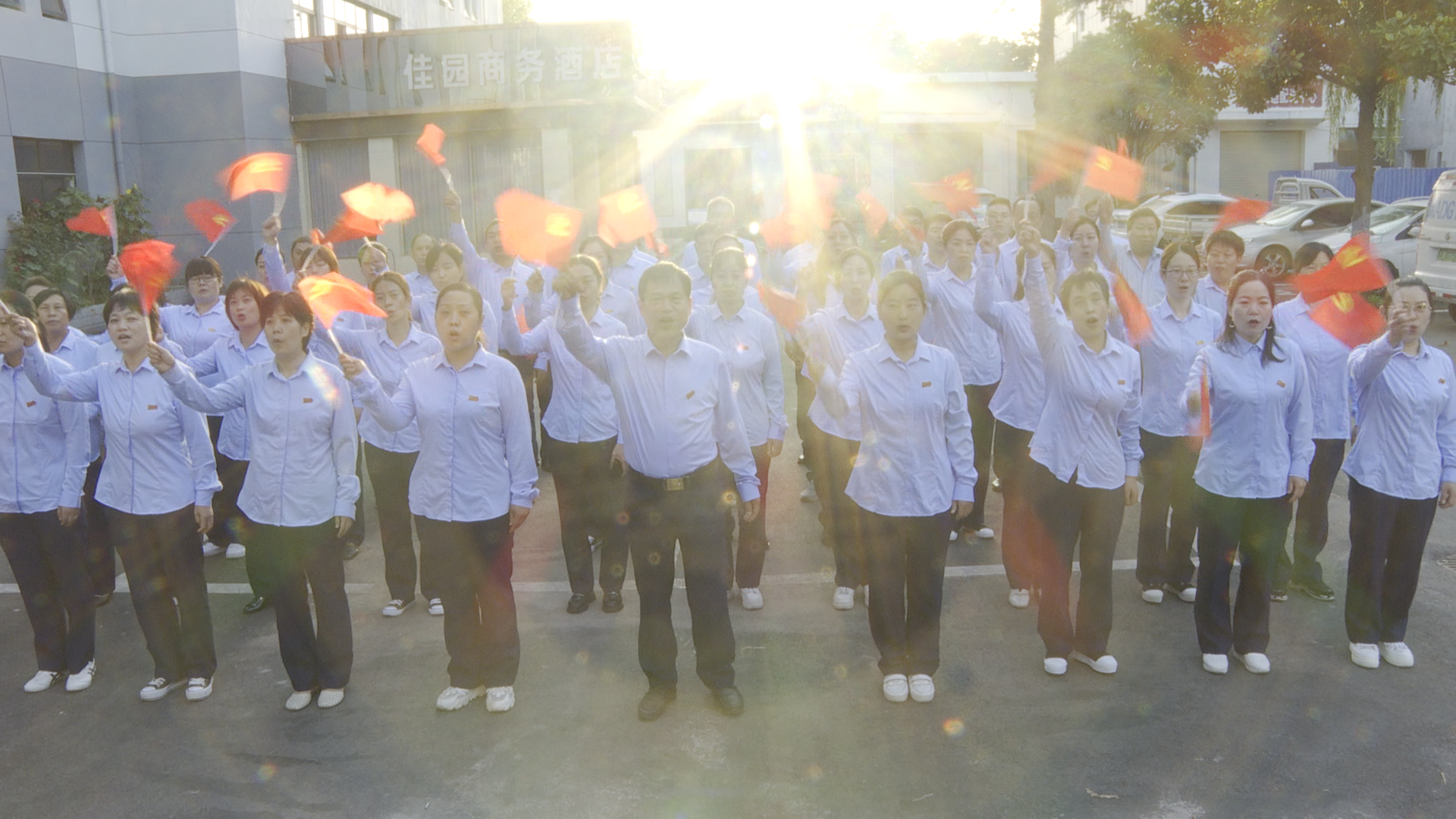 2021年是中國(guó)共產(chǎn)黨成立100周、中華人民共和國(guó)成立72周年,為激發(fā)愛國(guó)熱情,凝聚奮進(jìn)力量,展現(xiàn)新華風(fēng)采。10月1日清晨6點(diǎn)30分,登封市店總經(jīng)理崔朝軍帶領(lǐng)全體干部職工在辦公樓停車場(chǎng)集合完畢,開展“賀國(guó)慶、展風(fēng)采”慶祝活動(dòng)。