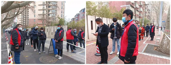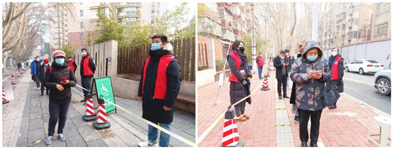 發(fā)行集團(tuán)志愿者不畏寒冷,按照要求提前趕到采樣點(diǎn),做好服務(wù)準(zhǔn)備工作。采樣期間,志愿者們根據(jù)工作分工,有的負(fù)責(zé)引導(dǎo)市民、維護(hù)現(xiàn)場(chǎng)秩序,提醒大家保持“一米線”距離,有序檢測(cè),同時(shí)解答群眾詢問;有的志愿者專門負(fù)責(zé)把守等候區(qū),將排隊(duì)人員10人歸為一組,有序前行進(jìn)行掃碼確認(rèn),到達(dá)核酸集采處完成采樣。中午時(shí)分,志愿者輪流就地用餐,工作不曾停歇,忠誠值守完成當(dāng)天工作任務(wù)。