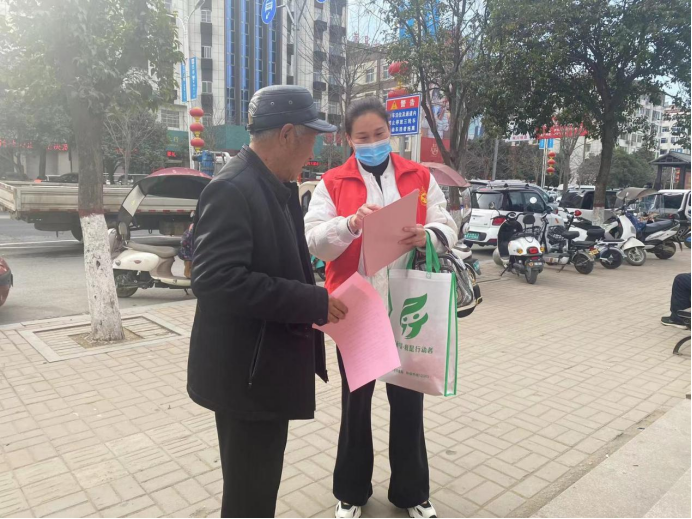 3月3日,嵩縣縣店開展“倡節(jié)約儉風尚”文明實踐主題活動,雷鋒青年志愿者在嵩縣街心公園向過往群眾介紹道。