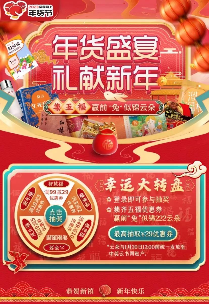 讀者還可參與云書網(wǎng)線上商城“集五!钡们啊巴谩彼棋\222云朵營(yíng)銷活動(dòng);還有新年禮遇新人、紅包文創(chuàng)用品買1贈(zèng)1等線上線下活動(dòng),更有超多圖書折扣,優(yōu)惠券等你拿。1月25日-1月27日,云書網(wǎng)將開展“新春讀好書,文化過大年”直播帶貨活動(dòng),關(guān)注“河南新華書店直播間”,每天精彩直播為你推薦正版福利好書,與主播互動(dòng)可享更多優(yōu)惠哦。