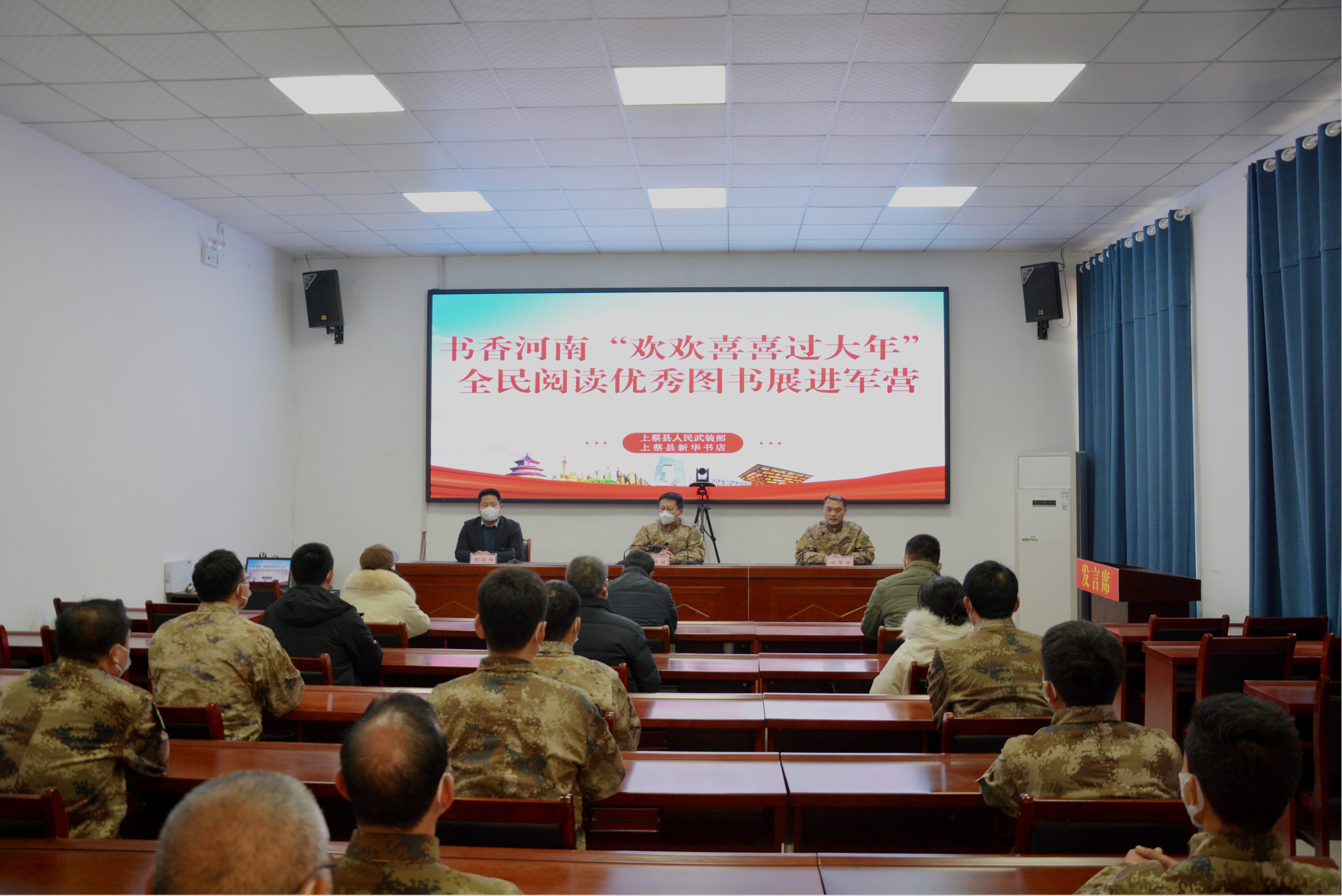 為進(jìn)一步弘揚(yáng)擁軍愛(ài)軍的光榮傳統(tǒng),充實(shí)部隊(duì)的文化建設(shè),豐富官兵們的業(yè)余文化生活,讓書(shū)香浸潤(rùn)軍營(yíng)。1月31日下午,上蔡縣店開(kāi)展書(shū)香河南“歡歡喜喜過(guò)大年”全民閱讀進(jìn)軍營(yíng)主題宣傳活動(dòng)。