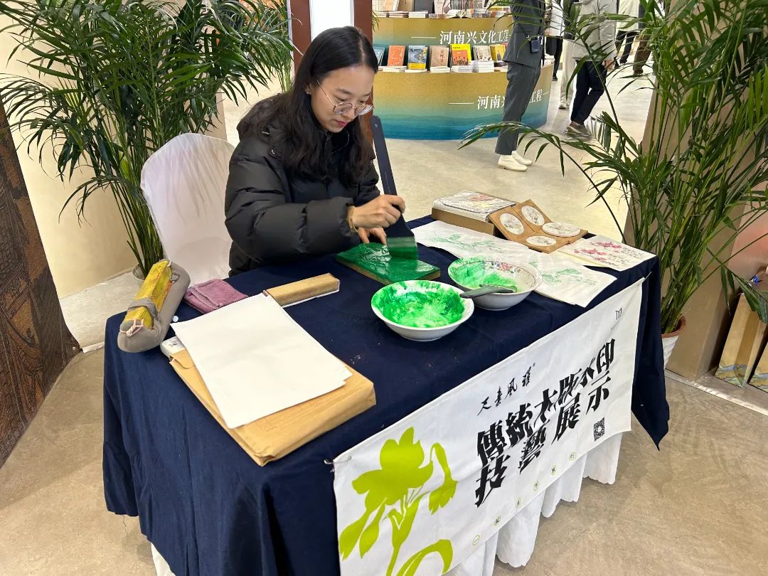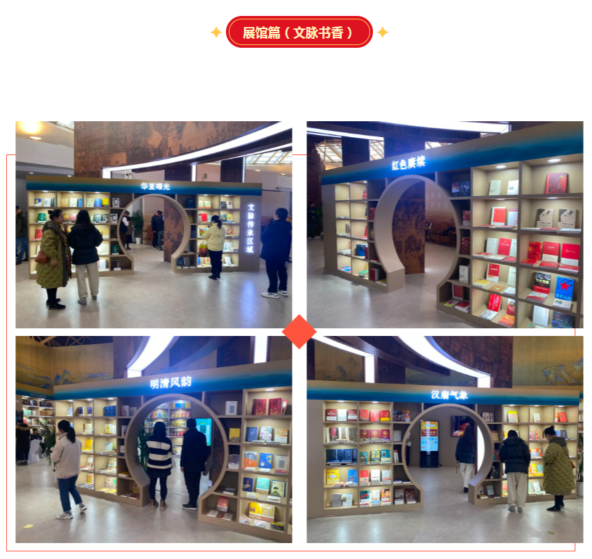 此次大會(huì)設(shè)置文脈書(shū)香展和河南古籍展。文脈書(shū)香展區(qū)整體采用“天圓地方、天地之中”的設(shè)計(jì)思路,設(shè)置了反映習(xí)近平新時(shí)代中國(guó)特色社會(huì)主義思想和黃河文化、興文化工程的圖書(shū)主題展區(qū),并以歷史為序,設(shè)置文脈傳承區(qū),包括“華夏曙光、漢唐輝煌、大宋夢(mèng)華、明清風(fēng)韻、紅色賡續(xù)”五大板塊,集中展示700種反映中華優(yōu)秀文化傳承創(chuàng)新的圖書(shū)。在五大主題板塊周邊設(shè)有豫版精品圖書(shū)展區(qū)和數(shù)字展區(qū),分別展示數(shù)百種豫版精品圖書(shū),以及中原出版?zhèn)髅郊瘓F(tuán)的融合出版創(chuàng)新項(xiàng)目、文創(chuàng)產(chǎn)品等,同時(shí)還組織書(shū)法、拓印、掐絲琺瑯、《山海經(jīng)中國(guó)神獸圖鑒》AR沉浸式體驗(yàn)等多項(xiàng)互動(dòng)活動(dòng)。整個(gè)展區(qū)動(dòng)靜結(jié)合、虛實(shí)相融,既讓讀者和觀展群眾感受到良好的閱讀氛圍,又能感受到現(xiàn)代科技賦能的新場(chǎng)景、新體驗(yàn)。