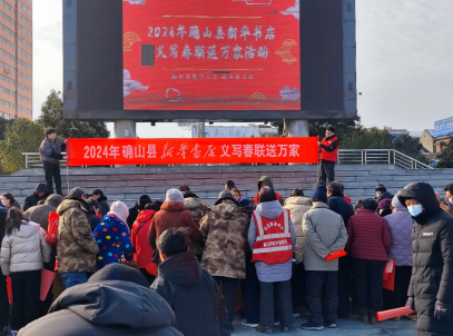 1月26日,確山縣新華書店結合運用全省書店春節(jié)春聯征集成果,聯合縣文聯組織開展了“義寫春聯送萬家”活動,特邀確山縣文聯的書法家們揮毫潑墨義寫春聯,把新年的祝福送給了廣大群眾,為書香確山建設添磚加瓦。