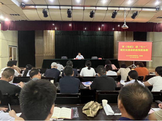 6月26日,汝州市店特邀市委宣傳部副部長崔英鋒蒞臨主講“迎七一”專題黨課。崔英峰以《學(xué)<黨紀(jì)> 迎“七一” 做文化使命的自覺擔(dān)當(dāng)者》為題,圍繞自覺遵守《條例》是做好工作的紀(jì)律保障、自覺擔(dān)當(dāng)文化使命是工作的“方向盤”和做好掃黃打非工作是提升業(yè)務(wù)的“助力器”三個方面,為全體黨員干部上了一堂精彩生動、內(nèi)容充實(shí)的黨課,對市店深入開展黨紀(jì)學(xué)習(xí)教育、推動各項(xiàng)工作高質(zhì)量發(fā)展起到了積極指導(dǎo)作用。