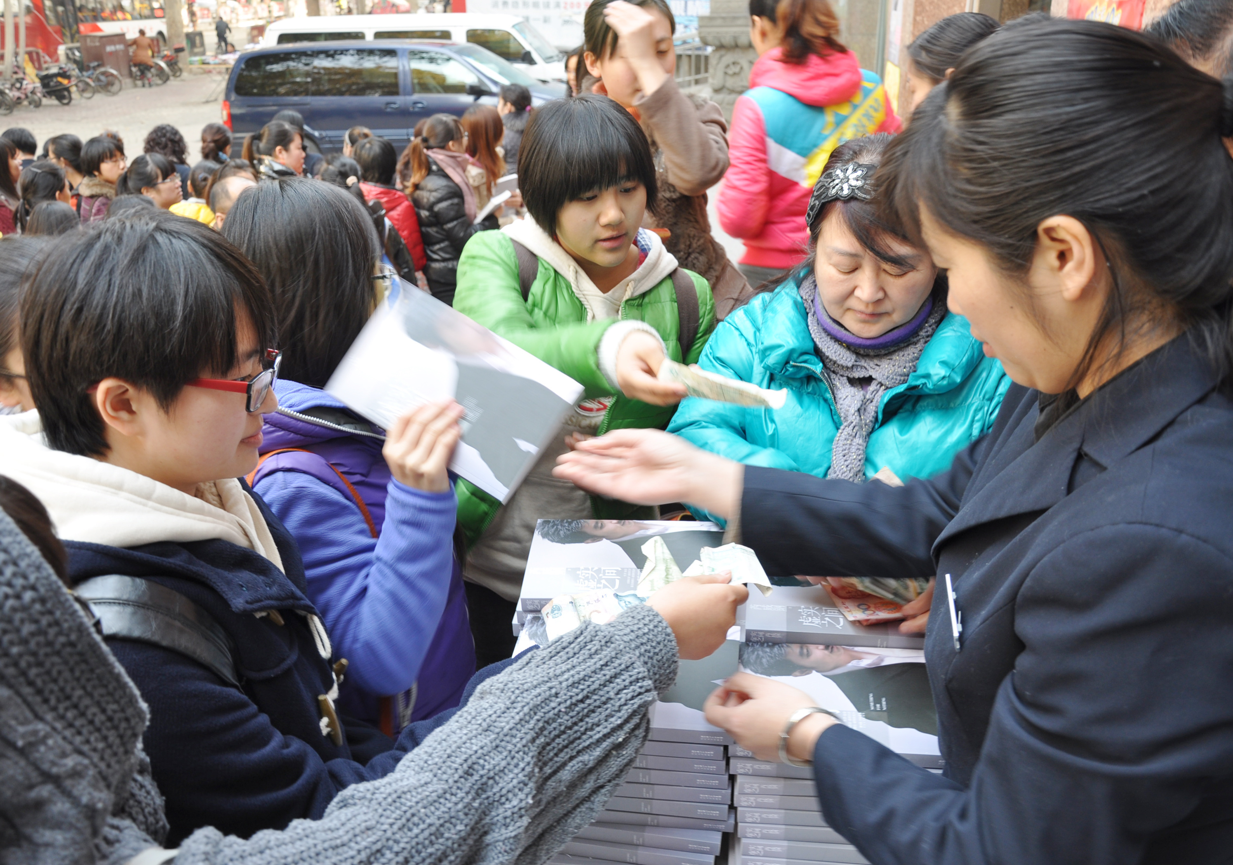 為了組織好此次簽售活動,新鄉(xiāng)市店在發(fā)行集團(tuán)和長江文藝出版社的大力支持下,準(zhǔn)備了充足的貨源。在宣傳措施上,提前三天在當(dāng)?shù)匦侣劽襟w和市店網(wǎng)站對宣傳相關(guān)活動信息進(jìn)行了有效宣傳,利用購書中心電子顯示屏滾動播出活動信息,采取在賣場采取擺放圖書造型、懸掛活動海報等措施進(jìn)行了積極有效地宣傳,同時鑒于該書的忠實讀者是在校大學(xué)生等青年群體,新鄉(xiāng)市店還組織相關(guān)人員深入河南師范大學(xué)、新鄉(xiāng)醫(yī)學(xué)院、新鄉(xiāng)學(xué)院等駐新高校張貼活動海報,收到了良好的宣傳效果。