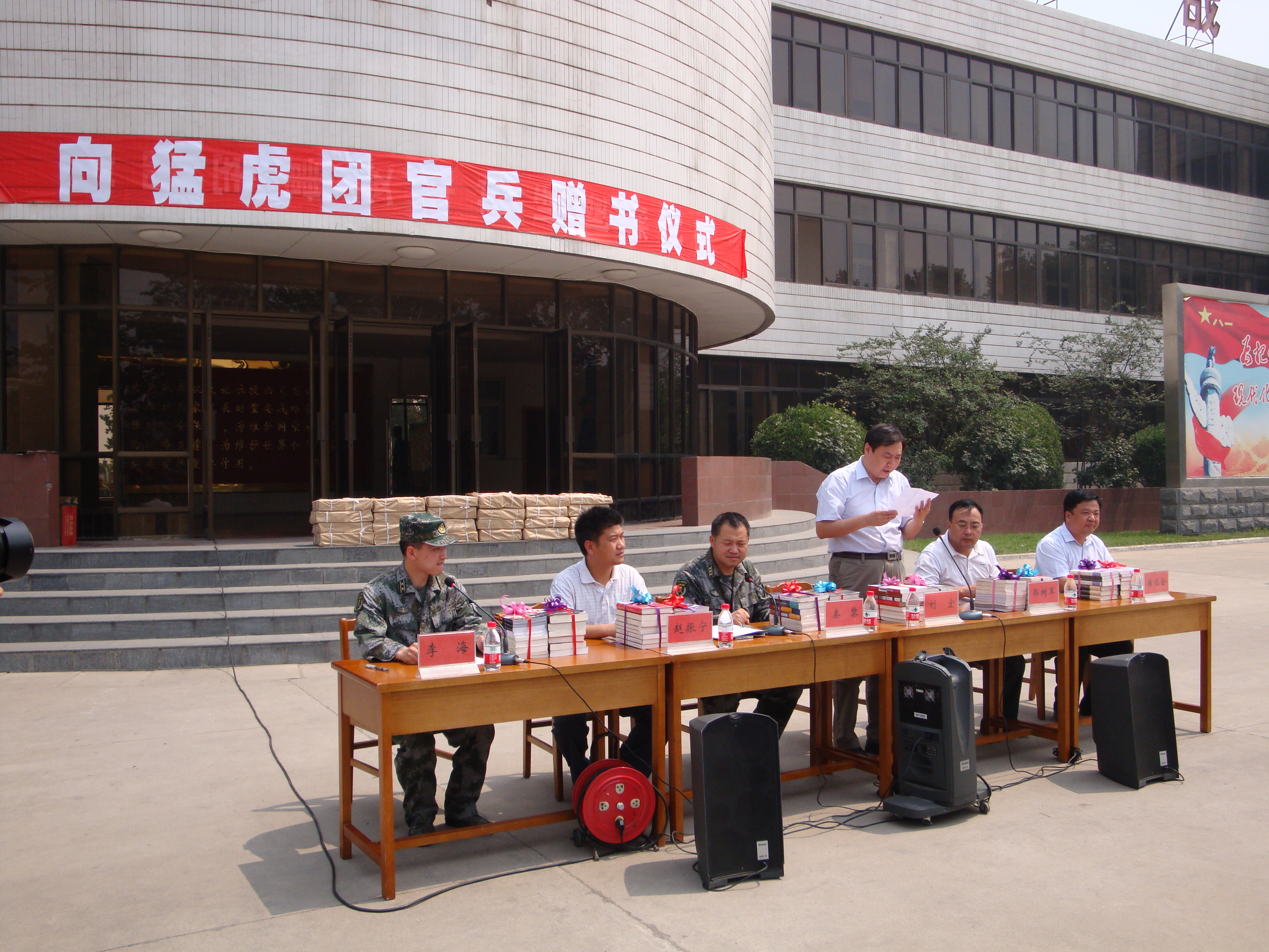 為支持部隊(duì)現(xiàn)代化建設(shè),歡送駐輝部隊(duì)猛虎團(tuán)赴藏訓(xùn)練。近日,由輝縣市委宣傳部、教育局、輝縣市店聯(lián)合組織,并舉行了向駐輝部隊(duì)猛虎團(tuán)贈(zèng)書儀式,贈(zèng)送了政治、軍事、經(jīng)濟(jì)、人文、歷史、勵(lì)志、文藝等多種類型書籍一千五百余冊(cè),希望戰(zhàn)士們?cè)谟?xùn)練、工作之余能多讀一些書,擴(kuò)展自己的知識(shí)面,增長(zhǎng)才干,提高個(gè)人的綜合素質(zhì),為部隊(duì)現(xiàn)代化建設(shè)做貢獻(xiàn),此次贈(zèng)書是支持擁軍的具體行動(dòng),受到該部隊(duì)領(lǐng)導(dǎo)及官兵的熱情歡迎。