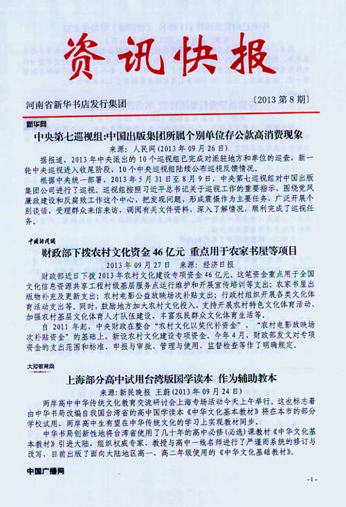河南省新華書(shū)店發(fā)行集團(tuán)有限公司前身為河南省新華書(shū)店,成立于1949年4月1日,隸屬于中原出版?zhèn)髅郊瘓F(tuán),其經(jīng)營(yíng)范圍涵蓋圖書(shū)、音像、電子出版物發(fā)行,具有中小學(xué)教材發(fā)行和評(píng)議類教輔發(fā)行資質(zhì),2008年12月注冊(cè)變更為河南省新華書(shū)店發(fā)行集團(tuán)有限公司。
