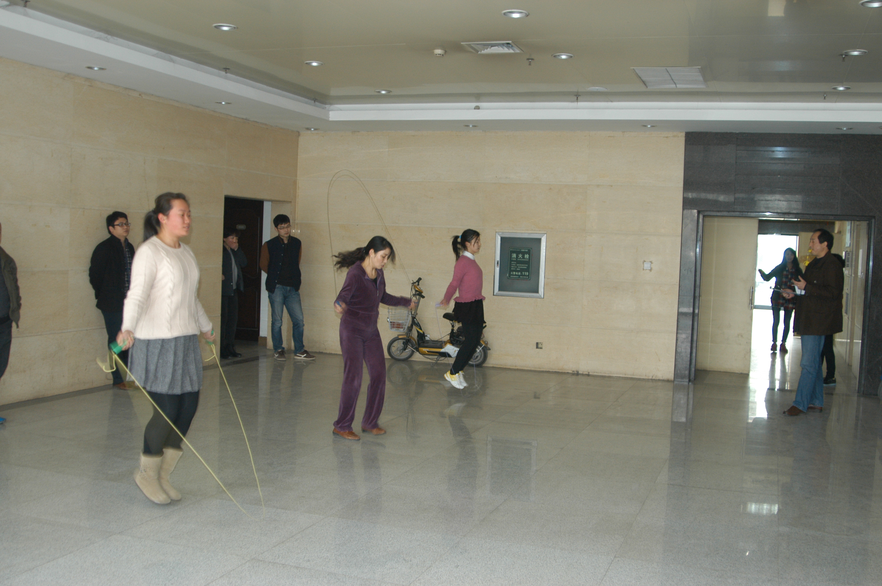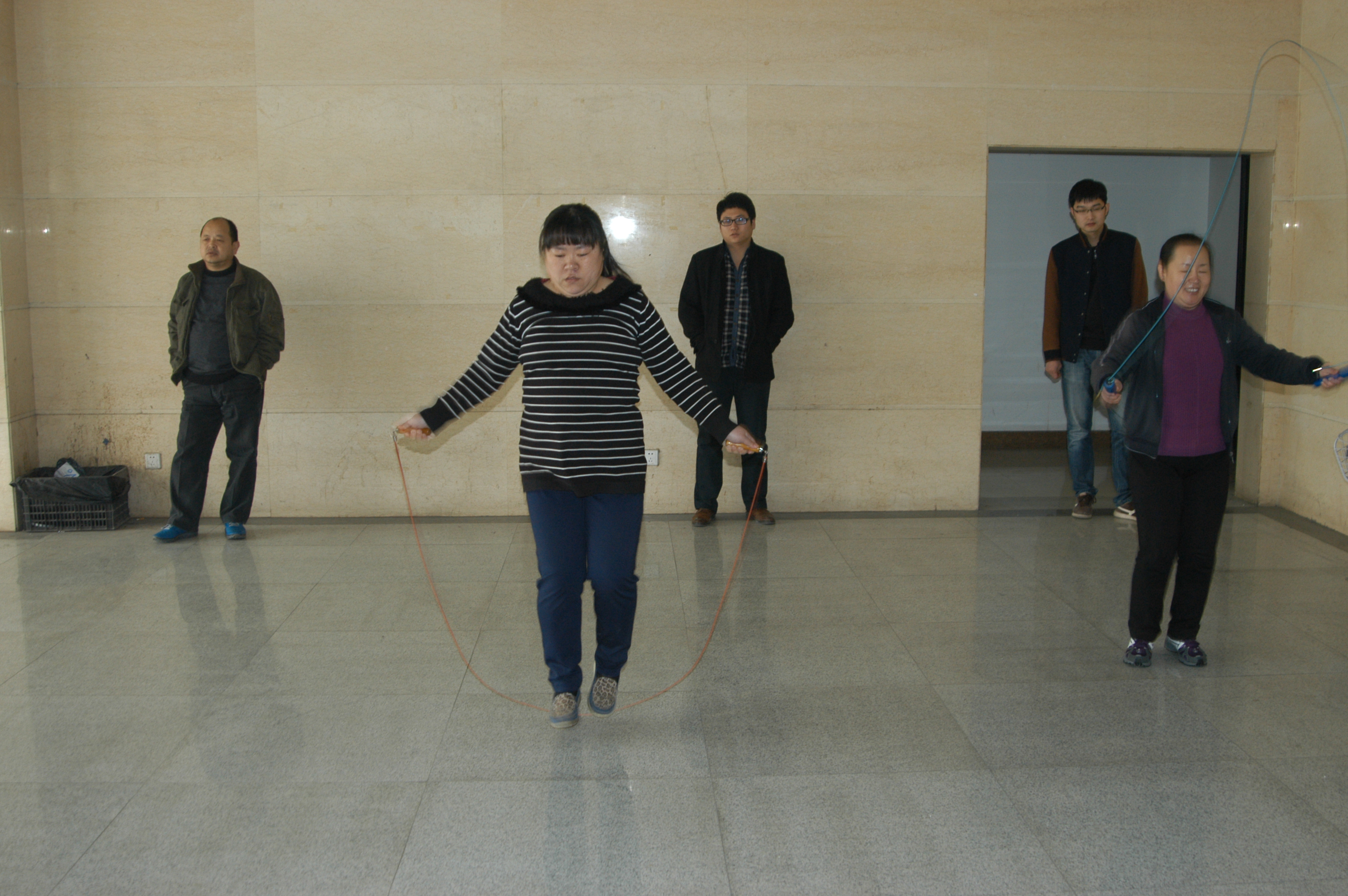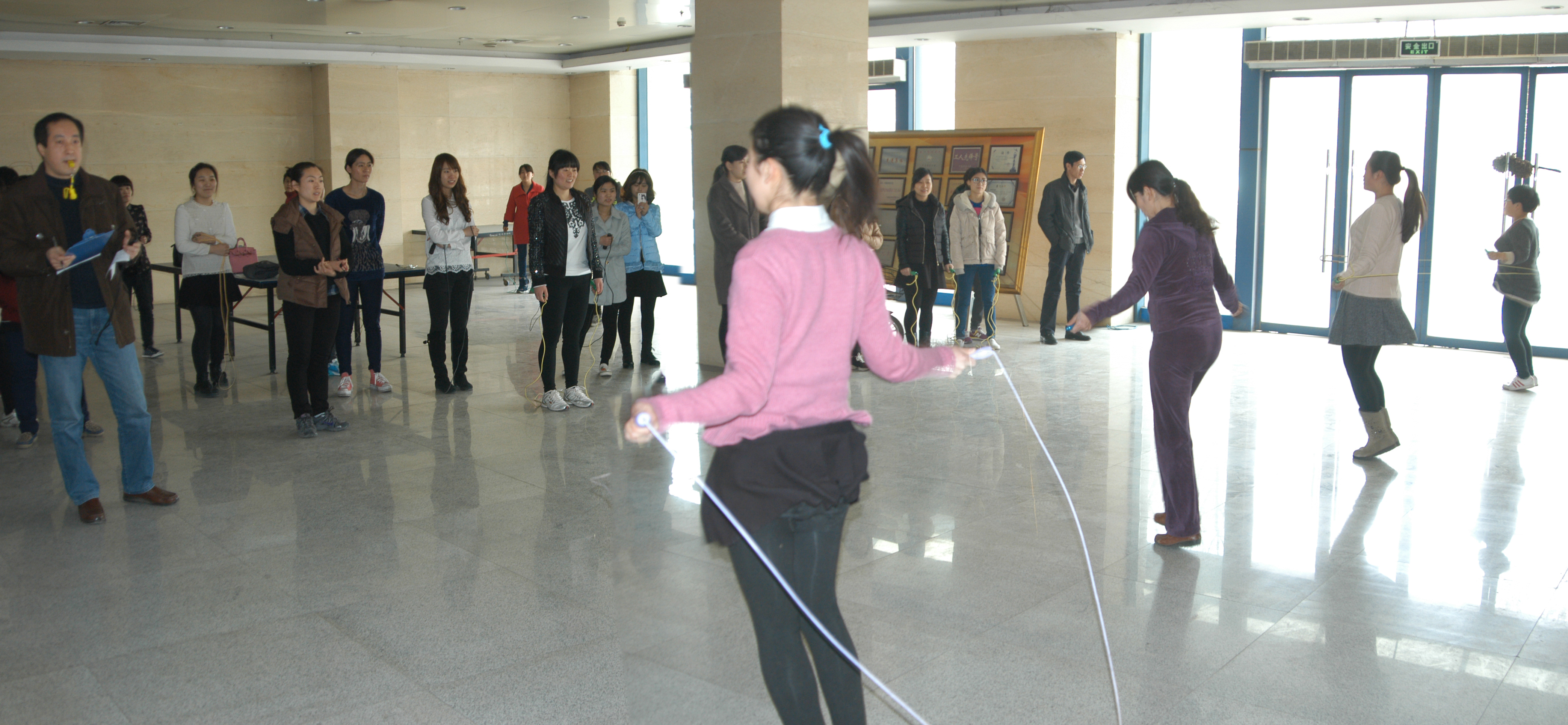 按本次比賽的要求,決賽選手分為8個組、每組4人依次進行比賽,比賽名次按每人在一分鐘時間內(nèi)所跳繩的次數(shù)相加多者列前。決賽中選手身輕如燕,靈活敏捷;助威觀戰(zhàn)女職工興致勃勃,歡呼雀躍。整個比賽過程歡快熱鬧,激烈活潑。經(jīng)過激烈的角逐,有17名優(yōu)勝者分別獲得了一、二、三等獎。