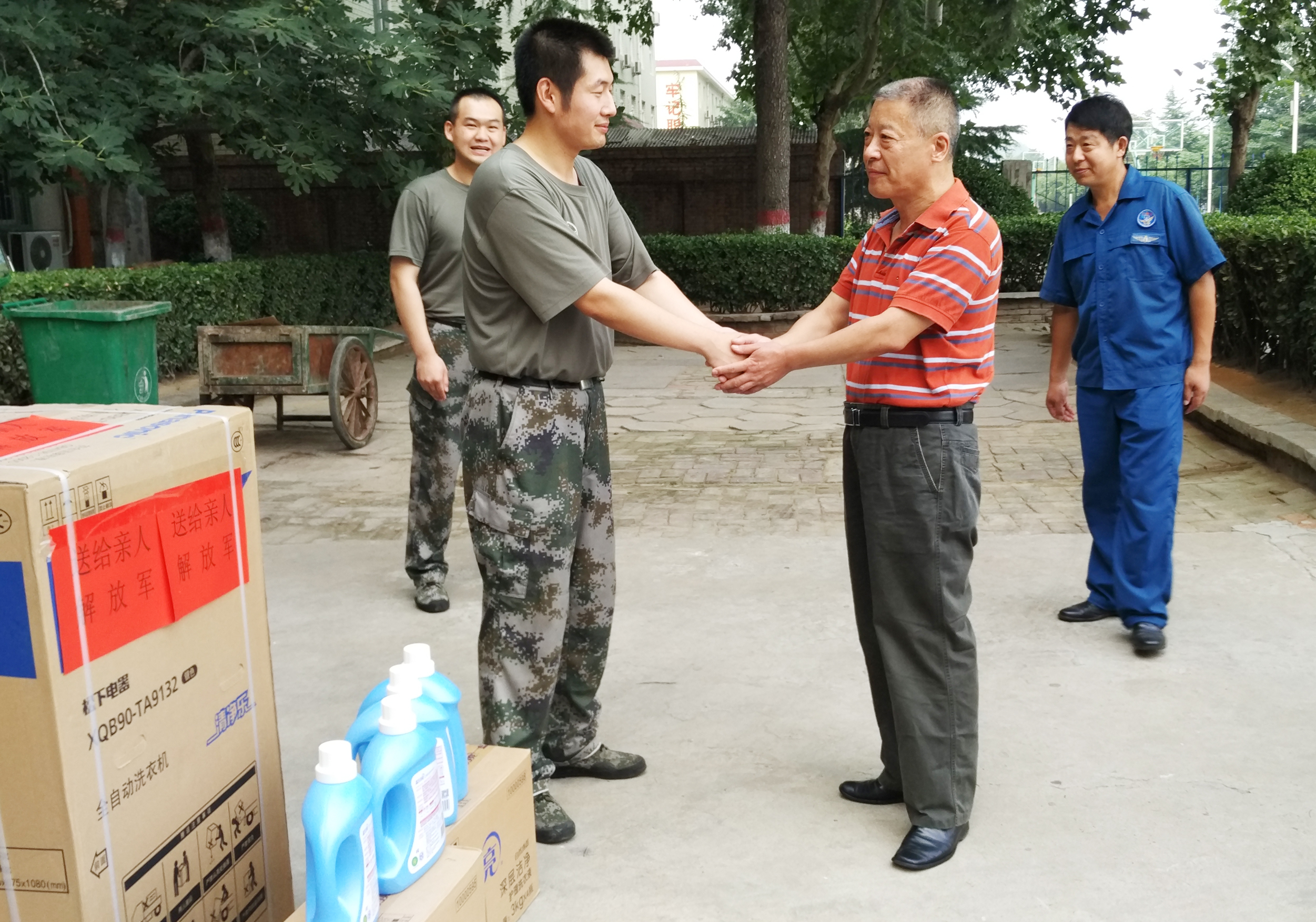 7月31日,新鄉(xiāng)市店對(duì)駐新某集團(tuán)軍陸航機(jī)務(wù)一中隊(duì)開(kāi)展慰問(wèn)活動(dòng)送去價(jià)值5000元的全自動(dòng)洗衣機(jī)和洗衣用品,向奮戰(zhàn)在訓(xùn)練一線的子弟兵送去了節(jié)日的慰問(wèn)。受到該中隊(duì)官兵的熱烈歡迎。