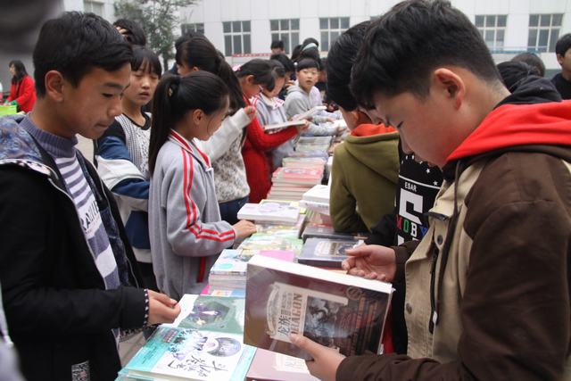 活動期間,該校學生積極參與、踴躍挑選,尤其在勵志、文學、歷史、益智等展位,隨處可見同學們認真捧讀的情景。