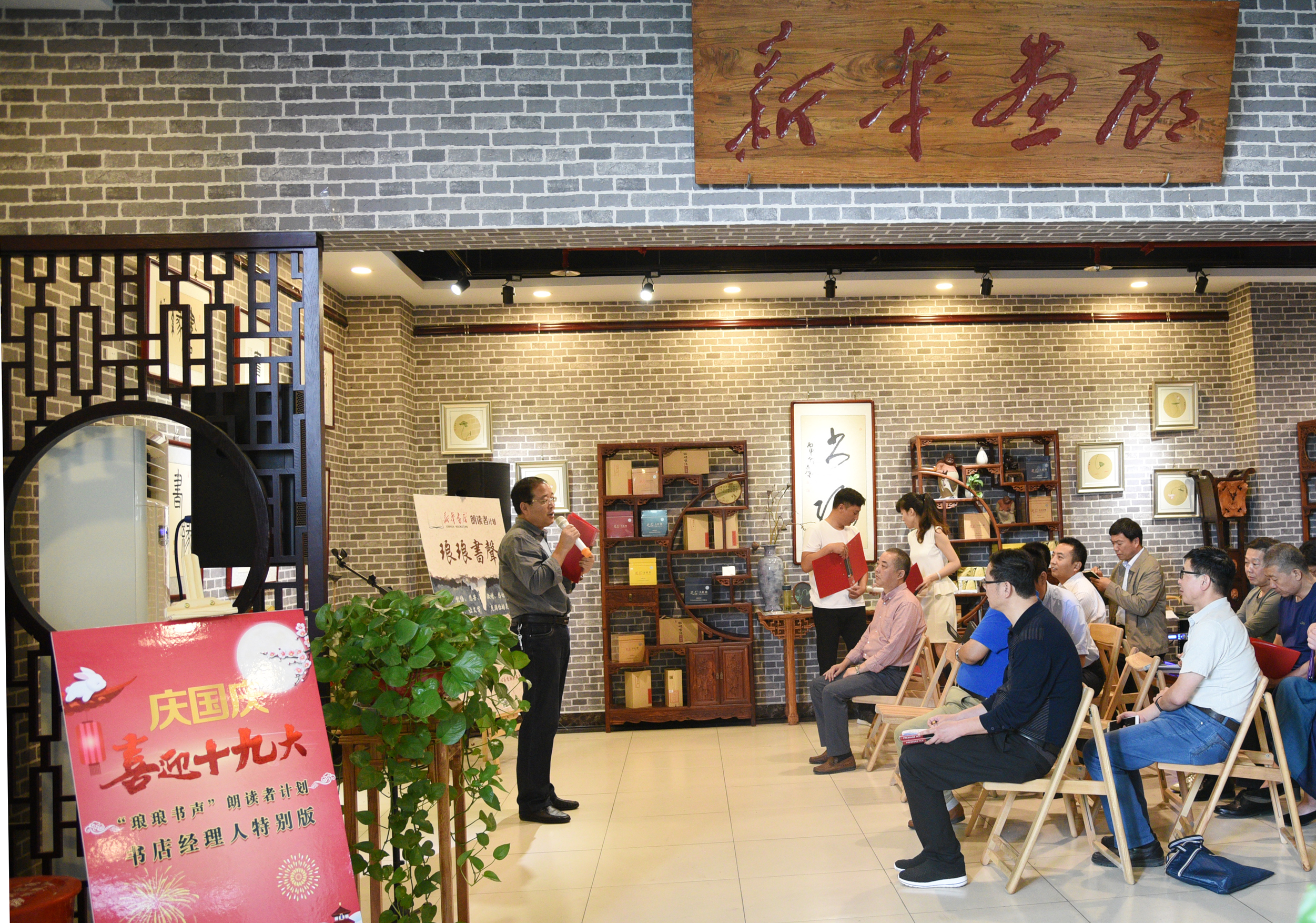 為獻(xiàn)禮祖國(guó)68歲生日,以嶄新的面貌喜迎黨的十九大。9月29日,新鄉(xiāng)市店籌劃舉辦的朗朗書(shū)聲經(jīng)理人特別版在購(gòu)書(shū)中心四樓“四寶草堂”舉行。新鄉(xiāng)市店領(lǐng)導(dǎo)班子成員、各縣(市)店經(jīng)理、書(shū)記以普通讀者的身份通過(guò)朗朗書(shū)聲這一平臺(tái),表達(dá)了對(duì)祖國(guó)、對(duì)黨的熱愛(ài)之情,以實(shí)際行動(dòng)喜迎黨的十九大。