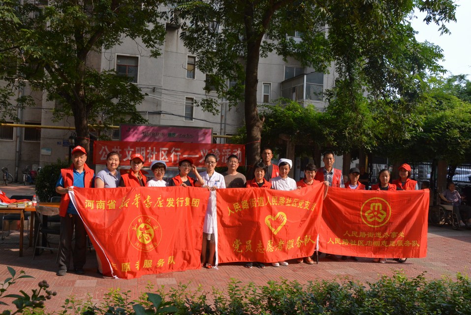 為加大文明單位創(chuàng)建力度,813日下午,發(fā)行集團(tuán)聯(lián)合金水區(qū)人民路社區(qū)、河南中醫(yī)藥大學(xué)第一附屬醫(yī)院,到省新華書店人民路家屬院,現(xiàn)場(chǎng)組織開展“公共文明社區(qū)行”義診活動(dòng),為居民辦好事、做實(shí)事,把好事辦好,更好地為社區(qū)居民和周邊群眾提供就近、便捷、貼心的醫(yī)療服務(wù),以實(shí)際行動(dòng)貫徹落實(shí)好上級(jí)文明辦倡導(dǎo)的“迎民族盛會(huì) 慶七十華誕 公共文明社區(qū)行”系列文明創(chuàng)建工作。此次義診活動(dòng)的項(xiàng)目主要有常見病問診,耳穴貼壓,測(cè)量血糖、血壓等。