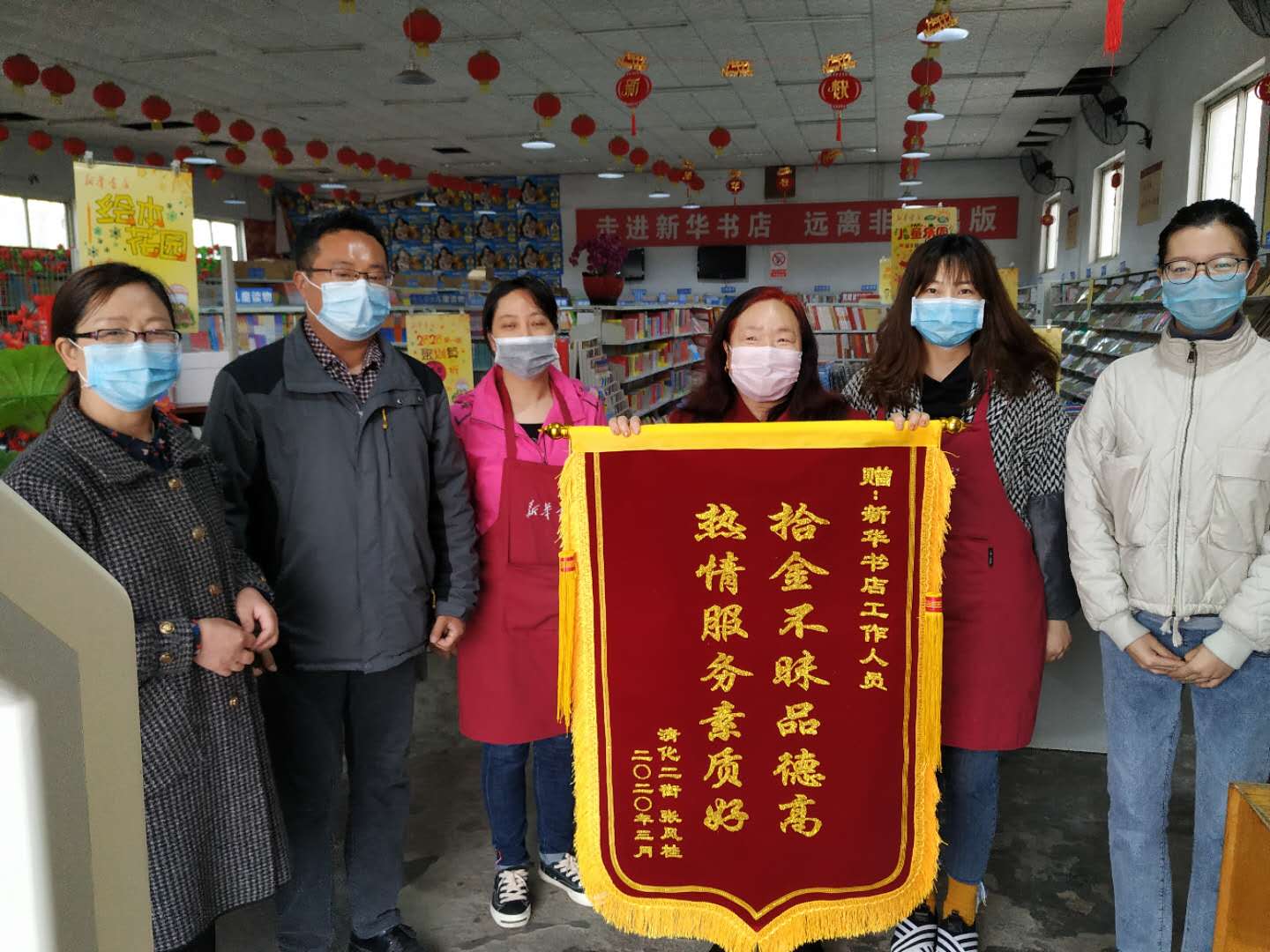 3月26日上午,清化鎮(zhèn)二街的張風桂女士帶著印有“拾金不昧品德高、熱情服務素質好”的錦旗送到博愛縣新華書店門市部,并為博愛縣新華書店的職工素質點贊。