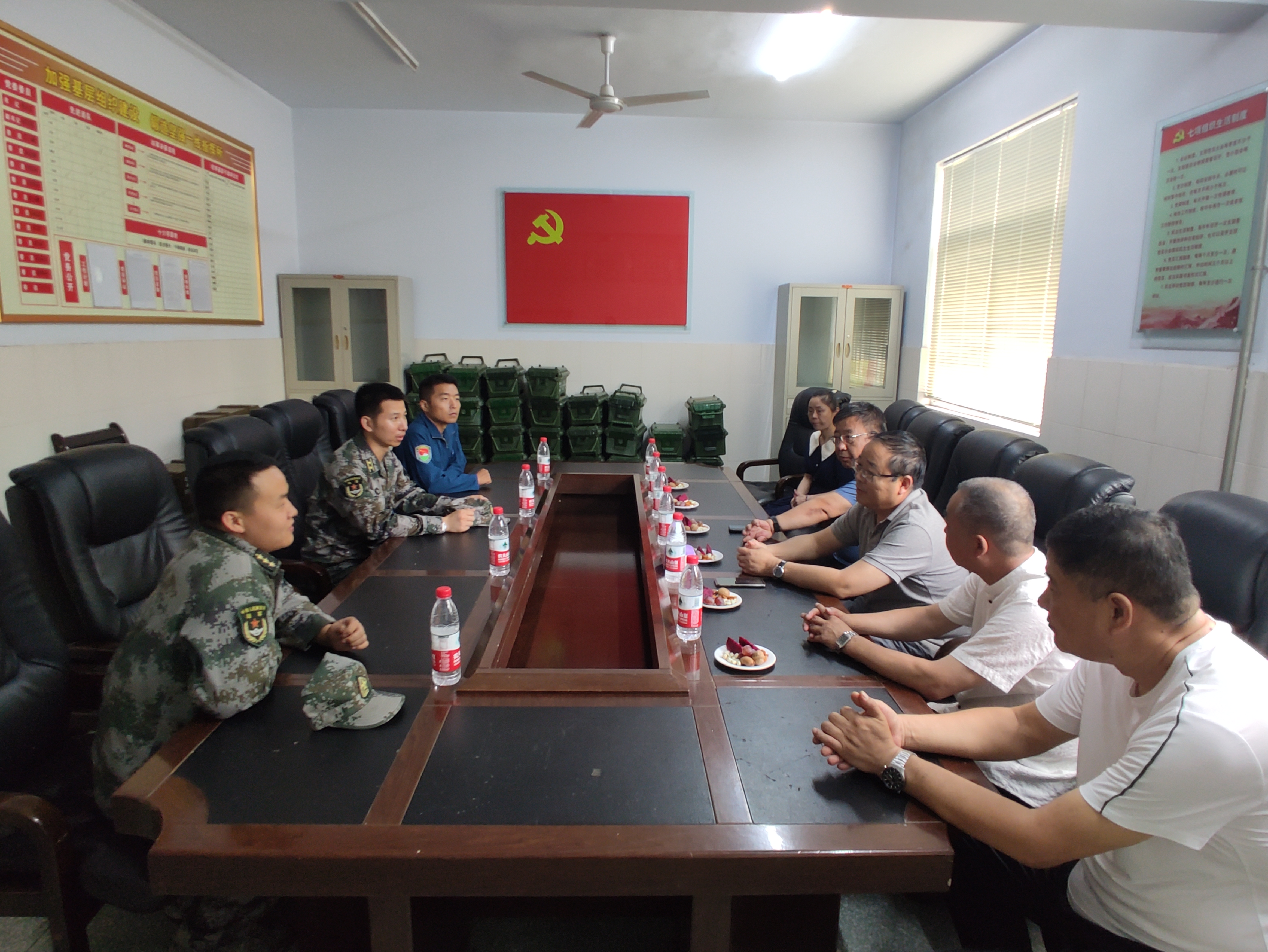7月31日,新鄉(xiāng)市店領(lǐng)導(dǎo)班子一行來到共建對子單位---駐新某集團軍運輸直升機一營開展“八一”擁軍慰問活動,共敘軍民魚水情深,受到人民子弟兵的熱烈歡迎。