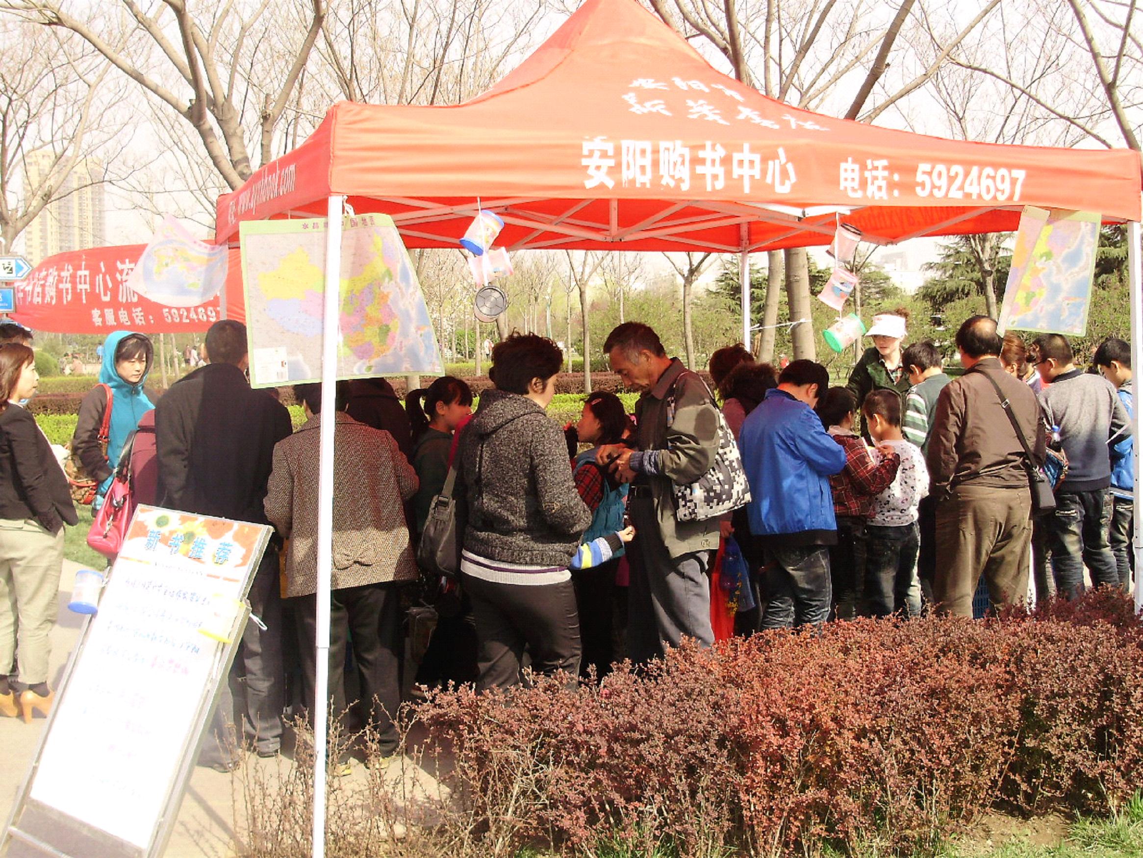 為給力全民閱讀,挖掘市場(chǎng)潛力,提升圖書銷售,在2012年國(guó)際兒童圖書日期間,安陽(yáng)市新華書店購(gòu)書中心積極與安陽(yáng)市少年兒童圖書館和安陽(yáng)市易園聯(lián)合,精心挑選圖書組成流動(dòng)書店,利用清明節(jié)三天假期,到兩館廣場(chǎng)和易園為廣大讀者朋友提供優(yōu)惠售書服務(wù)。