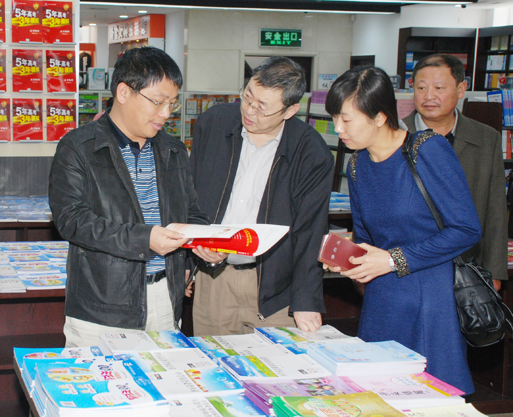 4月25日上午,新聞出版總署出版產業(yè)發(fā)展司副司長張亮一行,在河南省新聞出版局副局長王新會等局領導陪同下,先后來到發(fā)行集團公司旗下的新華天潤連鎖樣本大廳、中原圖書大廈,對2012年春季中小學教輔材料發(fā)行情況進行了調研。中原出版?zhèn)髅郊瘓F副總裁、發(fā)行集團公司董事長李永臻,發(fā)行集團公司總經理林疆燕、黨委書記李向午等領導班子成員陪同視察。