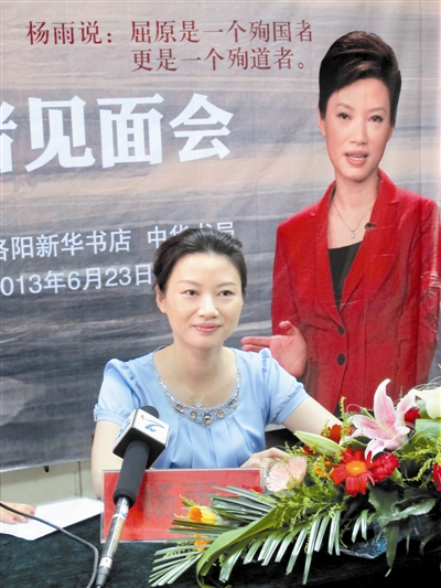 簽售會上,被譽為“中國最美女教授”的楊雨與讀者互動交流,回答了不少讀者提出的問題,在等待簽售的隊伍中,不僅有年過八旬的老人,還有不到10歲的兒童。不少讀者是《百家講壇》的忠實觀眾,每天中午都會準時守在電視機前收看這個節(jié)目,現(xiàn)在能在現(xiàn)場聽楊雨教授講課,大家都感到十分興奮了。 為搞好此次簽售活動,洛陽市店及早準備,周密部署,與新聞媒體合作,將簽售消息提前在廣播、電視、網絡上廣為傳播,吸引廣大市民踴躍參與。同時儲備了充足的貨源,在店堂通過橫幅、海報、易拉寶、專架陳列等方式大力宣傳,營造濃厚的文化氛圍,確保簽售活動取得圓滿成功。