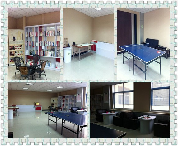 該店將“職工之家”從原來的小屋子搬遷擴(kuò)建為現(xiàn)在的大房間,并且劃分了區(qū)域,其中有對弈區(qū)、運動區(qū)、閱讀區(qū)、書法區(qū)等,對弈區(qū)包括各式各樣的棋類,運動區(qū)也在原來單單的兵乓球項目上增加了毽子、跳繩等,別看閱讀區(qū)不大,藏書卻不少,各種圖書滿足不同的需求,最愜意的應(yīng)該是書法區(qū),偌大的寫字桌上面鋪有毛氈布,文房四寶一樣不少,還配有名家的書法臨摹作品,文化氣息十分濃厚。“職工之家”的規(guī)章制度運用POP海報形式張貼,活潑又不失嚴(yán)肅,整個“職工之家”動靜皆宜。