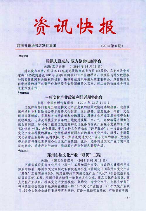 來源:河南省新華書店發(fā)行集團有限公司  作者:河南省新華書店發(fā)行集團有限公司  發(fā)布時間:2014/3/14 10:45:53  閱讀次數(shù):10080