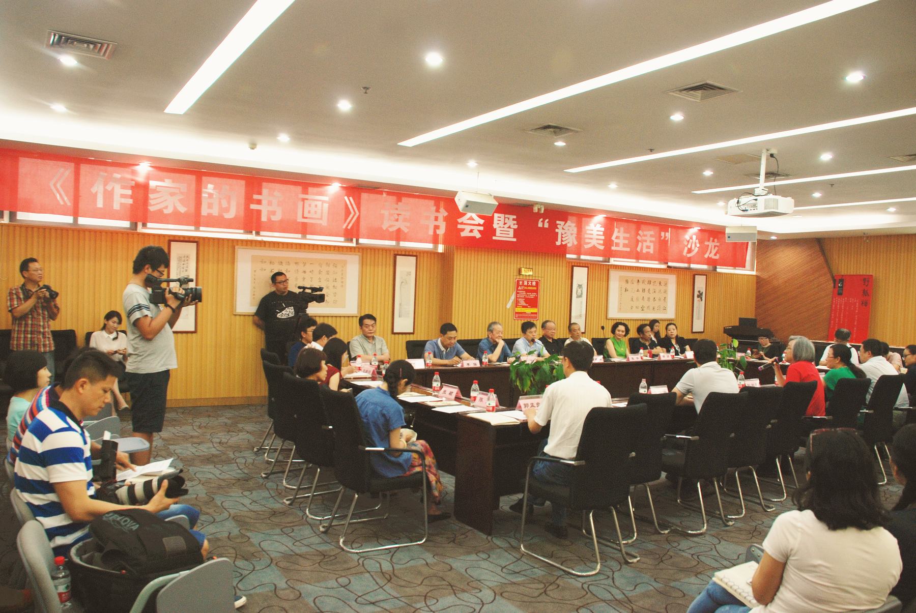 2015年7月17日,“作家的書畫”讀書會(huì)暨“豫美生活”沙龍?jiān)诤幽鲜⌒氯A書店整體書房舉行。南丁、曹新林、謝安鈞、李強(qiáng)、吳行、張宇、邵麗、喬葉、馮杰、張鮮明、楊青、安琪、任瑜等我省文學(xué)界、書畫界、新聞出版界知名人士出席。這是由河南省新華書店發(fā)行集團(tuán)、河南美術(shù)出版社主辦,河南日?qǐng)?bào)文體新聞部協(xié)辦的“作家的書畫”讀書會(huì)暨“豫美生活”沙龍,也是我省文化領(lǐng)域一次大腕云集的聚會(huì)。
